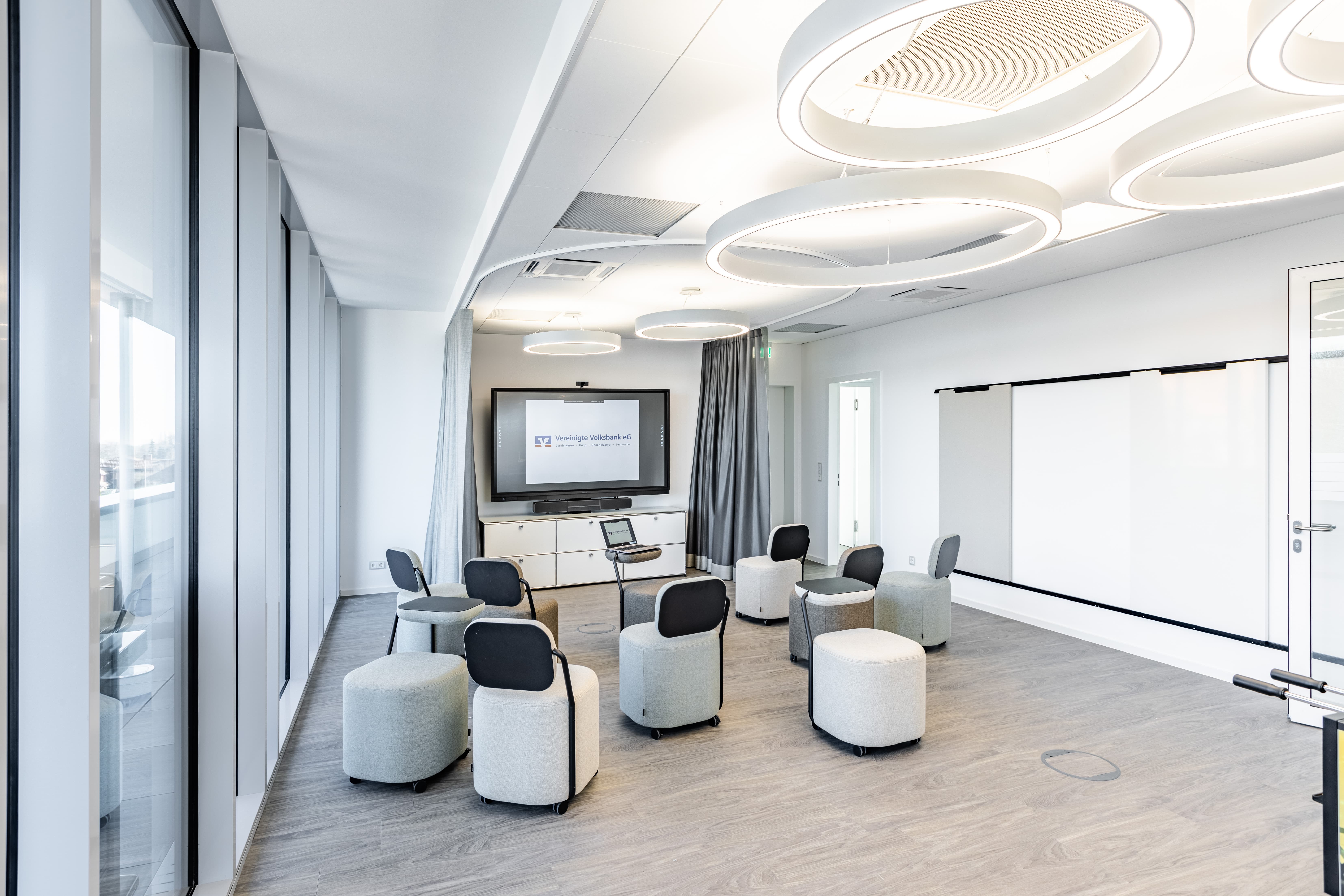 Um eine moderne und effiziente Arbeitsumgebung zu schaffen, wird auf eine nahtlose Integration von Technologie gesetzt. In den Besprechungs- und Konferenzräumen wurden fortschrittliche Technologien eingesetzt, um die Zusammenarbeit und Kommunikation zu verbessern.