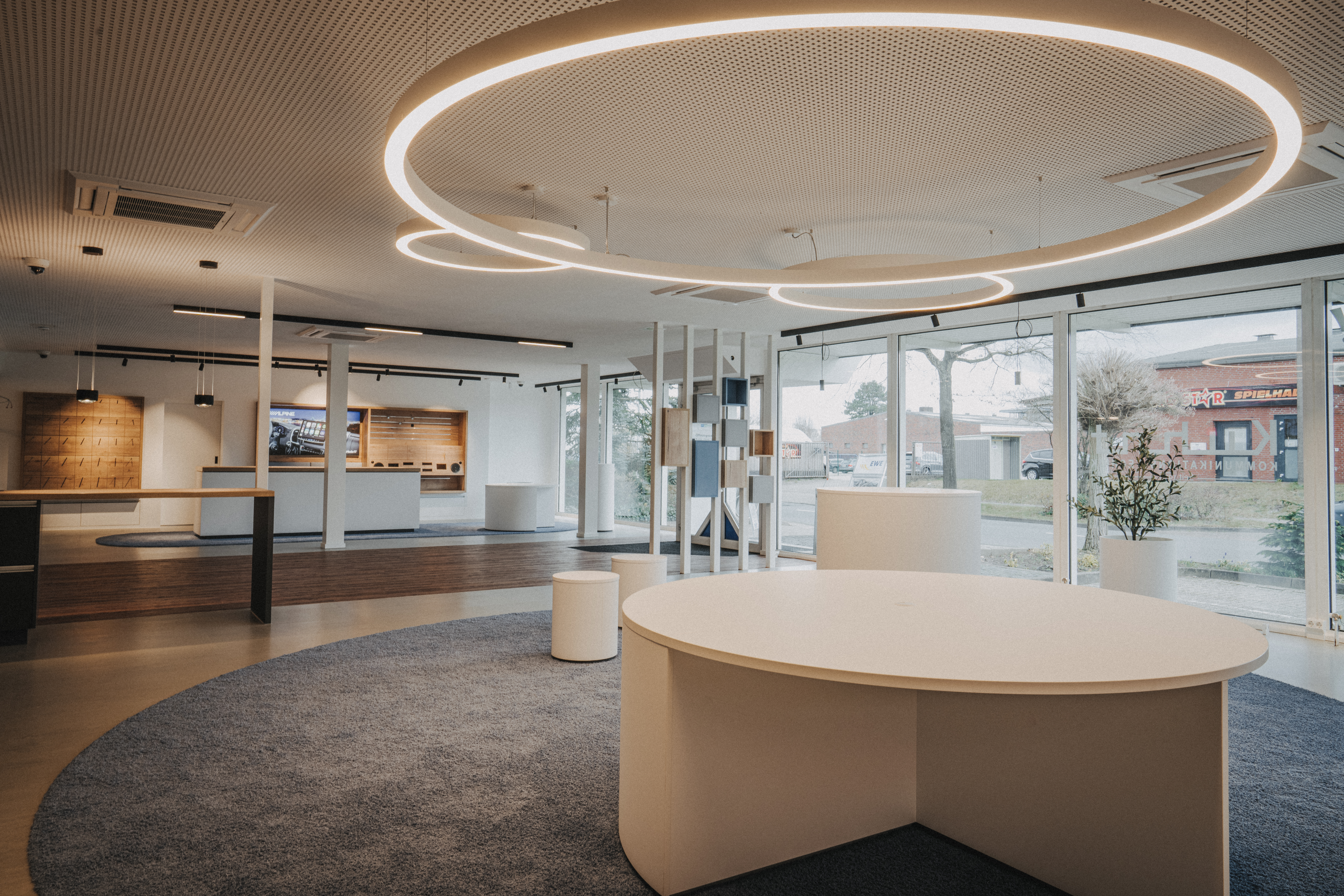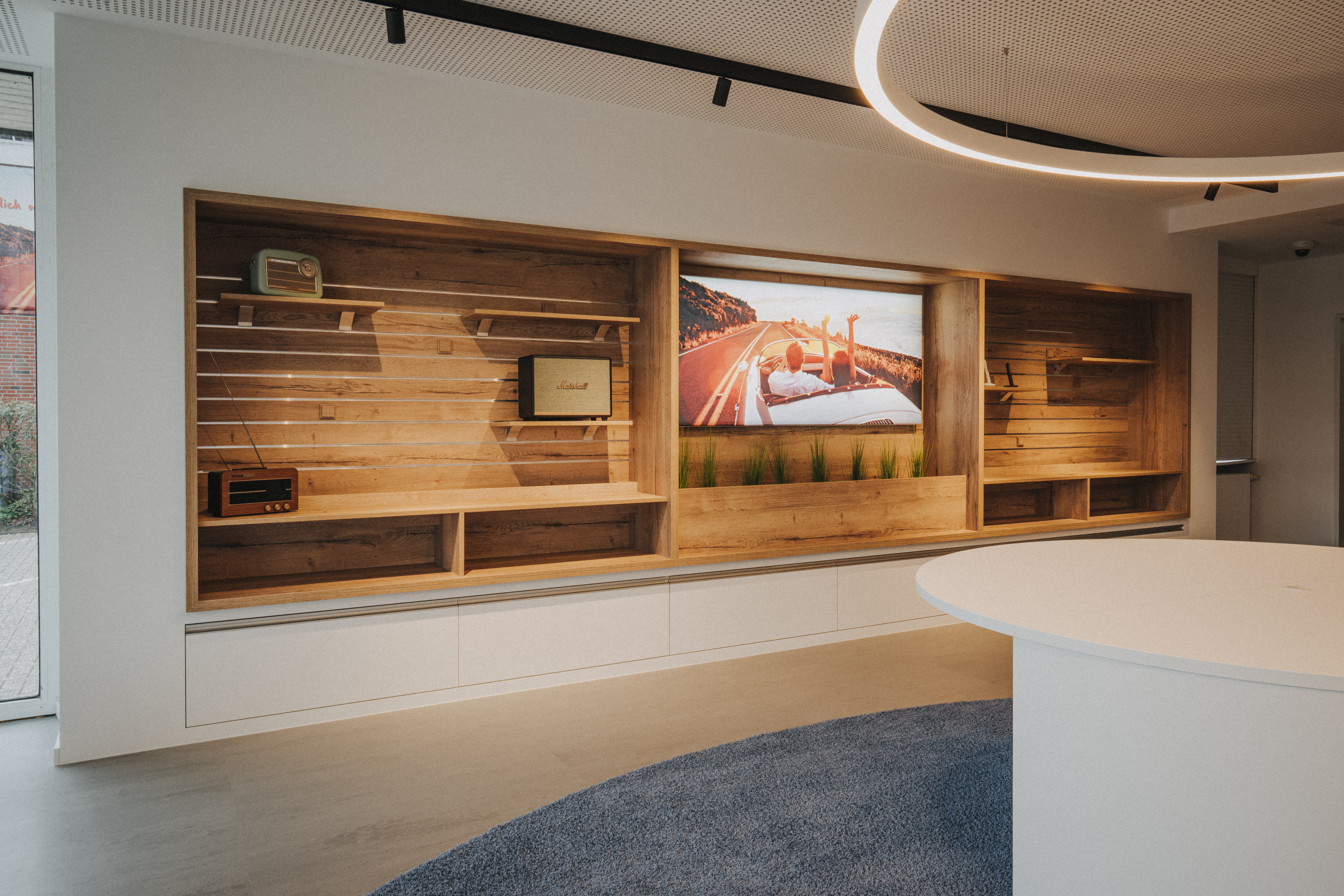 In enger Zusammenarbeit mit den Bauherren, haben wir das neue Konzept für den Laden entwickelt. Dabei spielte auch das Backoffice und ein Meetingraum eine tragende Rolle, welche sich zum Kundenraum öffnen sollten. Zu unseren planerischen Aufgaben gehörten auch die Ausführungsplanung sowie die Vergabe der Gewerke. Während der Umsetzungsphase betreuten wir die Umbaumaßnahmen bis zur Übergabe.
