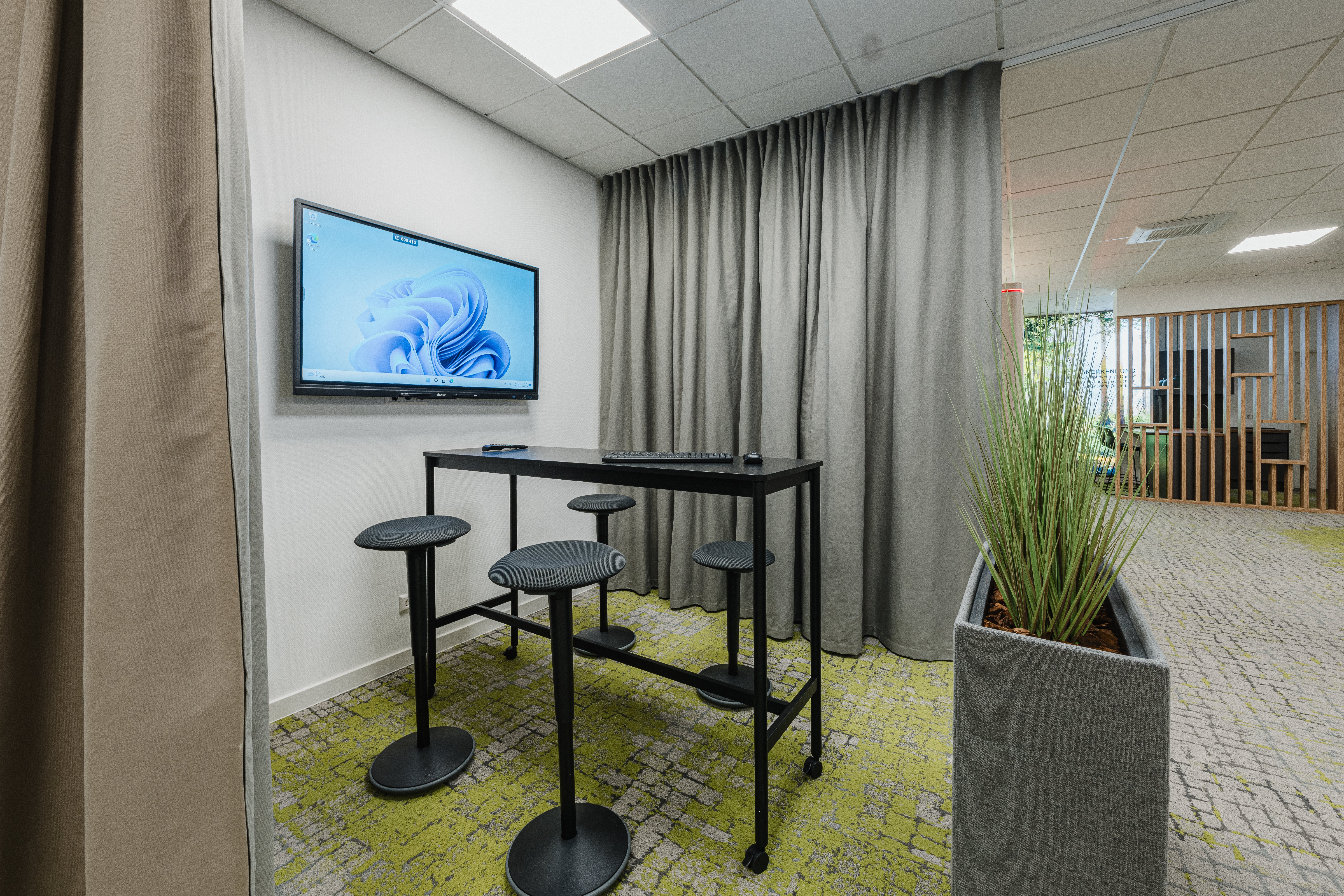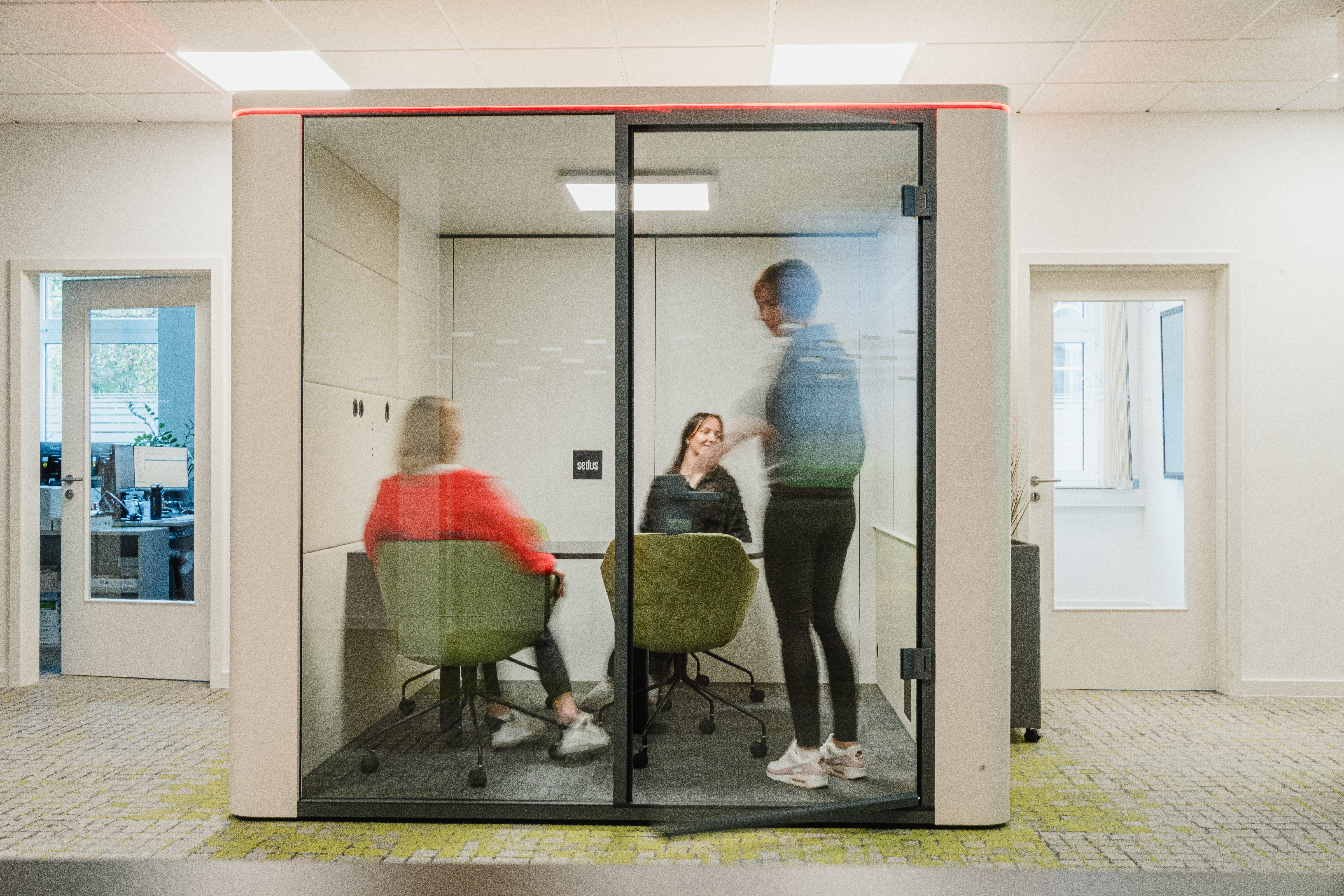 Telefonzellen: Bieten eine private Atmosphäre für vertrauliche Telefonate, weit entfernt von den Hauptarbeitsbereichen, um Störungen zu vermeiden.