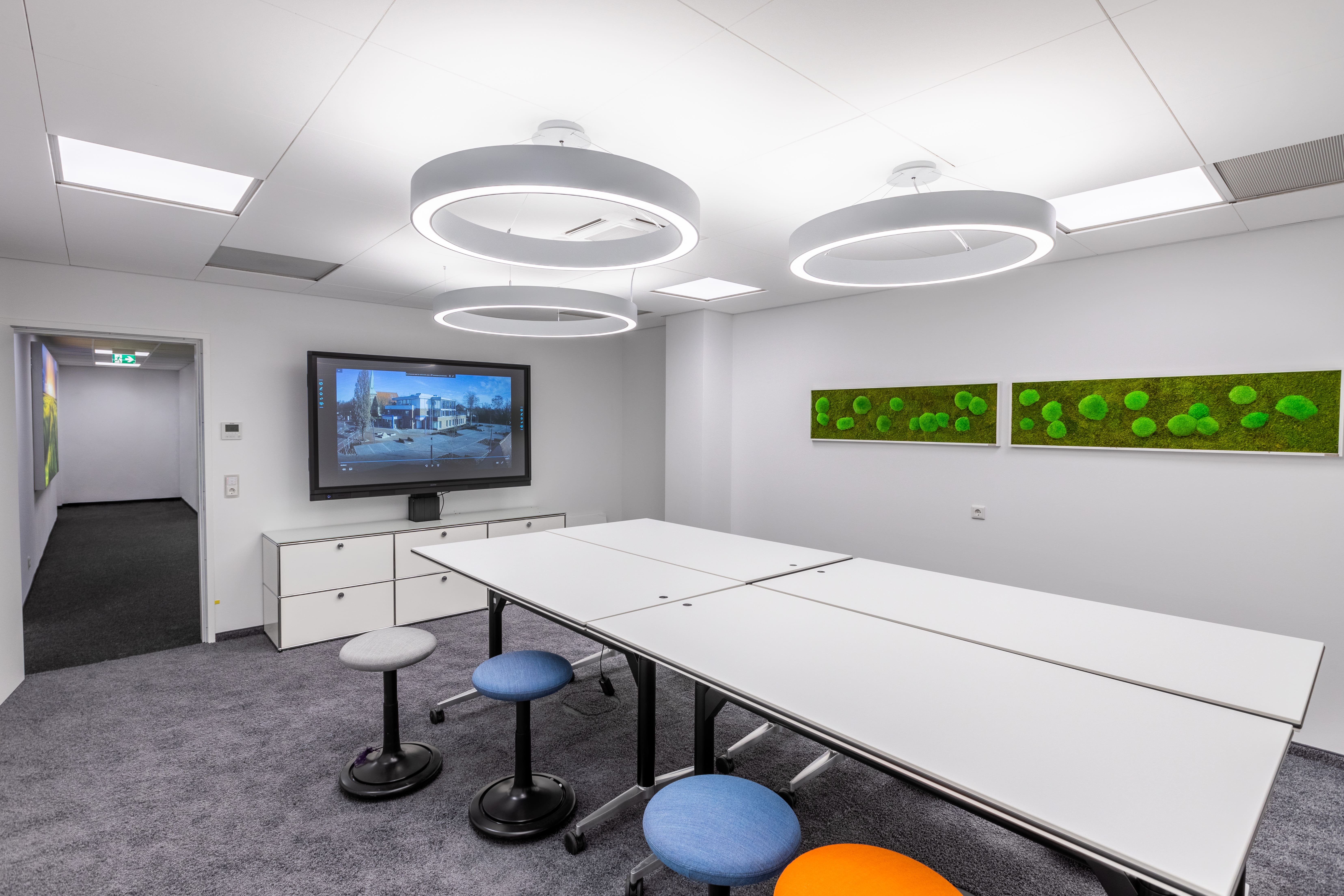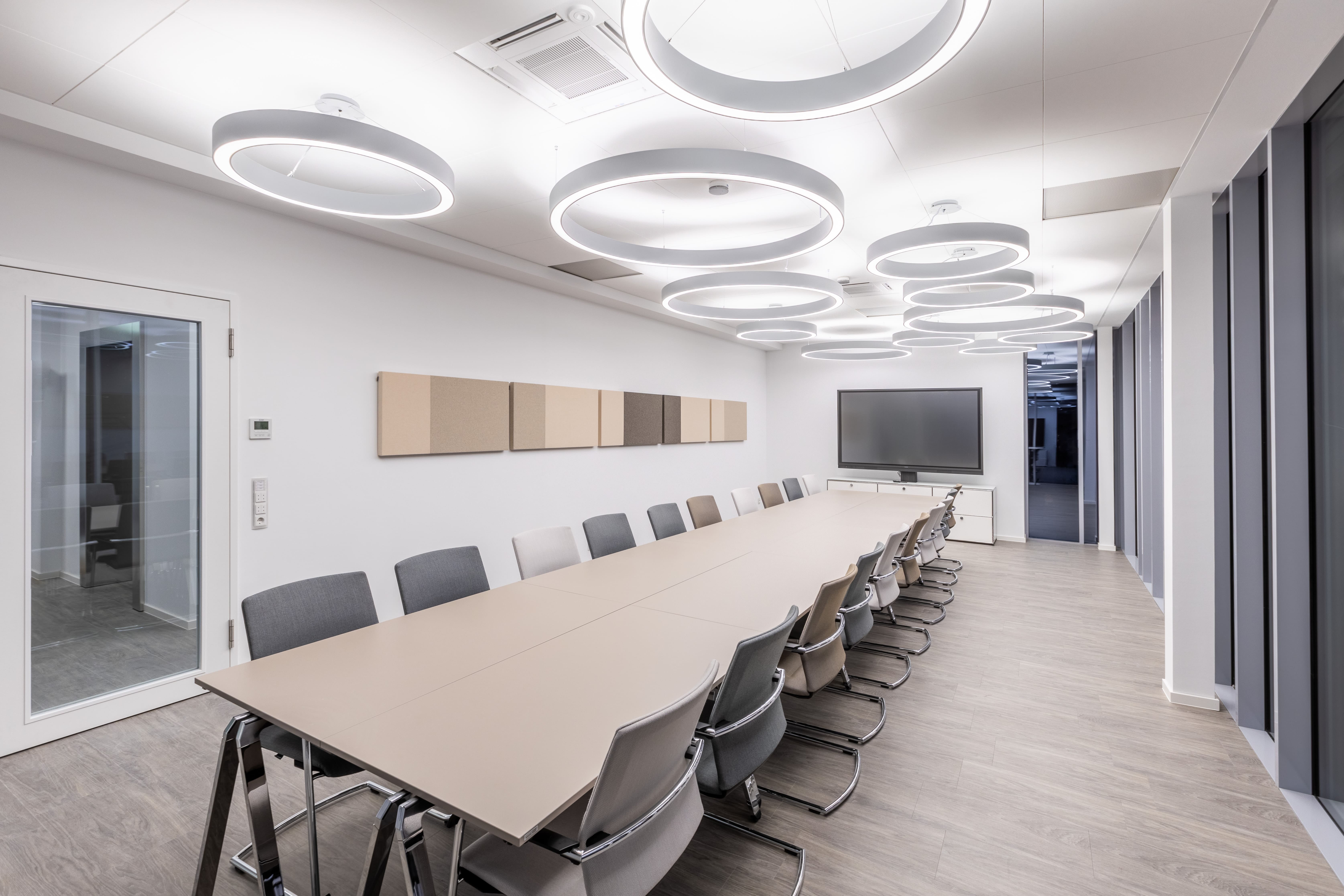 Um eine moderne und effiziente Arbeitsumgebung zu schaffen, wird auf eine nahtlose Integration von Technologie gesetzt. In den Besprechungs- und Konferenzräumen wurden fortschrittliche Technologien eingesetzt, um die Zusammenarbeit und Kommunikation zu verbessern.