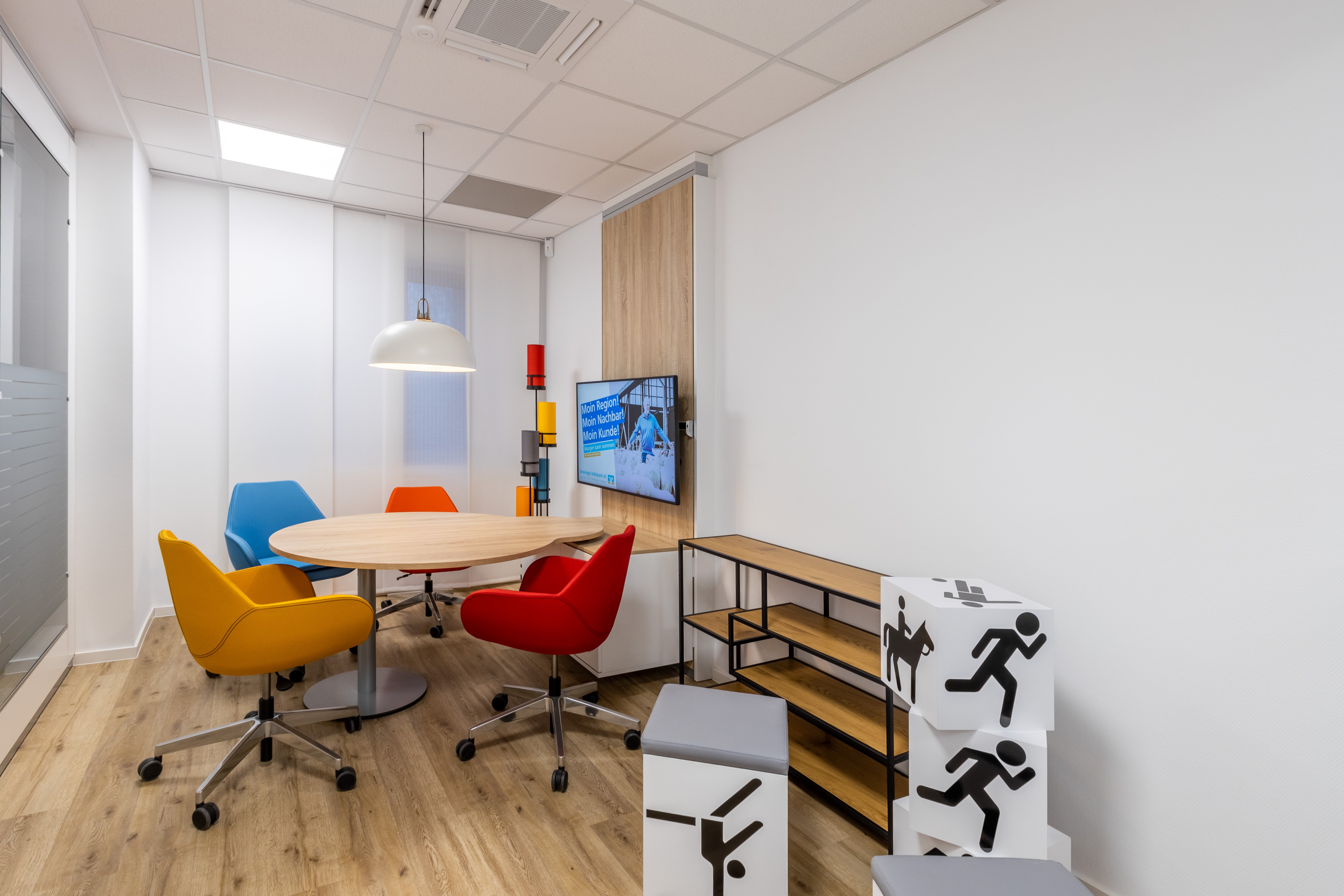 Als Bank ist die Kundenorientierung von entscheidender Bedeutung. Dies wurde bei der Gestaltung des Servicebereichs berücksichtigt. Durch ein einladendes und professionelles Ambiente wird ein positives Kundenerlebnis geschaffen, das die Werte der Volksbank widerspiegelt.